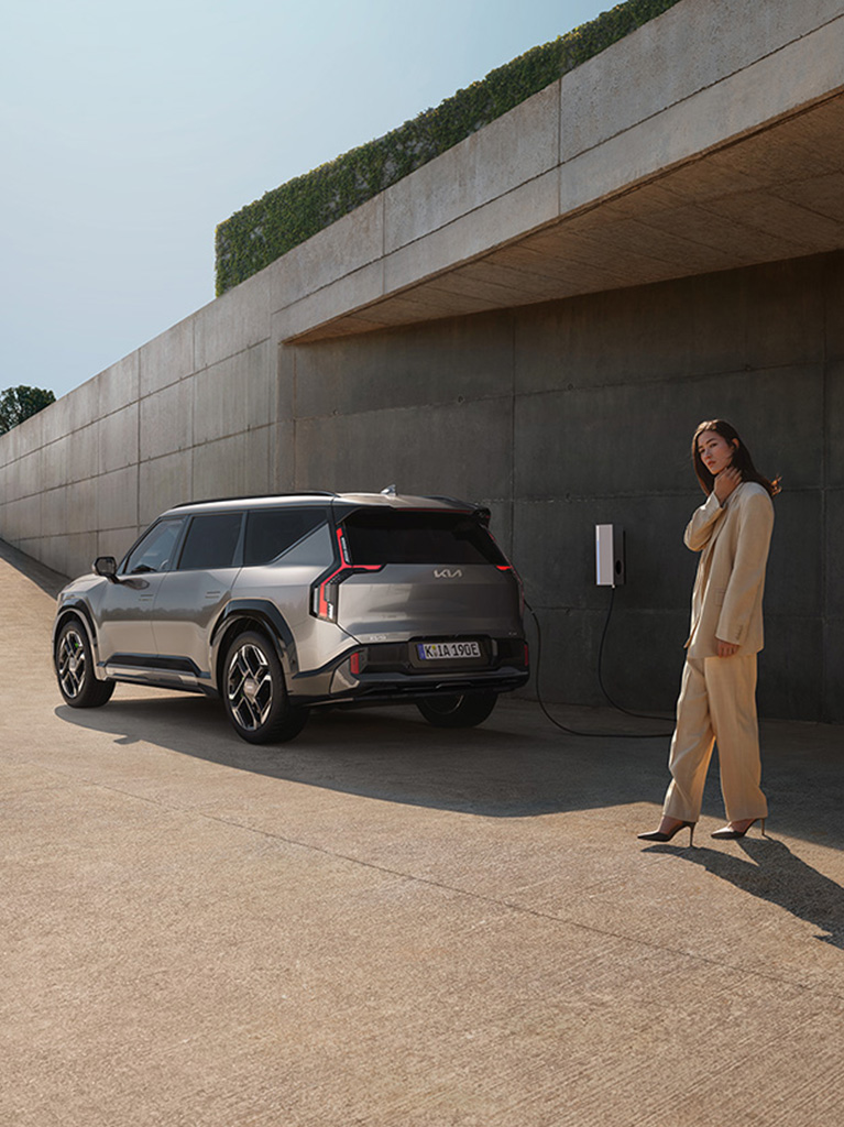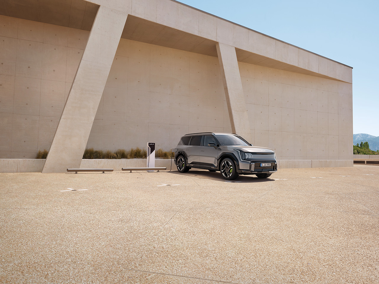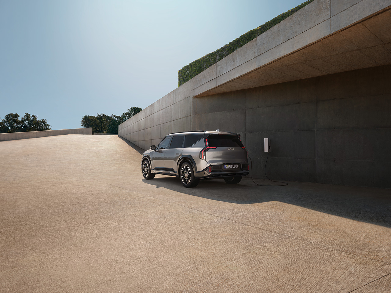Um die maximale Ladegeschwindigkeit erreichen zu können, muss der EV9 GT an einer 800-Volt-Ladestation mit mindestens 210 kW geladen werden. Die reale Ladegeschwindigkeit und Ladedauer hängen von der Batterie-Temperatur und den Wetterbedingungen ab.